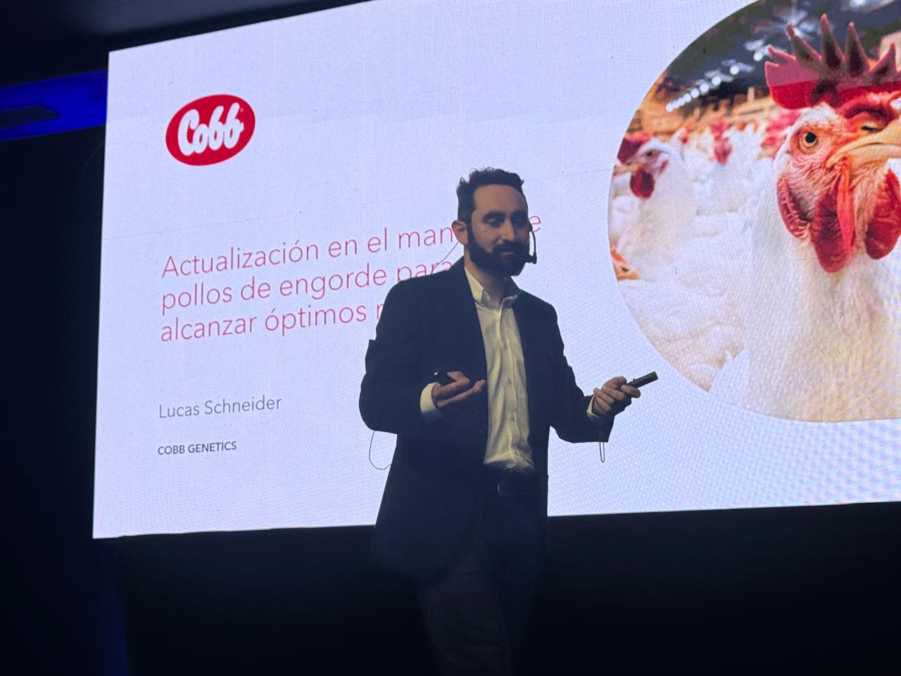 Lucas Schneider presentó la ponencia titulada “Actualización en el manejo de pollos de engorde para alcanzar óptimos resultados”, donde compartió estrategias innovadoras y recomendaciones prácticas para maximizar el rendimiento productivo en granjas comerciales.