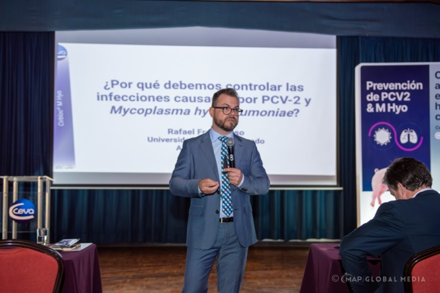 Finalmente, Rafael Frandoloso desarrolló una presentación centrada en la importancia de controlar PCV2 y Mycoplasma hyopneumoniae, destacando el impacto económico que generan estas enfermedades en la porcicultura global. Explicó que PCV2 continúa siendo uno de los virus más prevalentes y dañinos, afectando el sistema inmunitario y el crecimiento de los animales, mientras que Mycoplasma hyopneumoniae es el principal agente asociado a la neumonía enzoótica, influyendo negativamente en la conversión alimenticia y el bienestar animal. Frandoloso enfatizó que cuando ambos patógenos coinciden en una misma granja, el impacto negativo se vuelve significativamente mayor, haciendo indispensable el uso de herramientas modernas y efectivas como Cirbloc Mhyo.