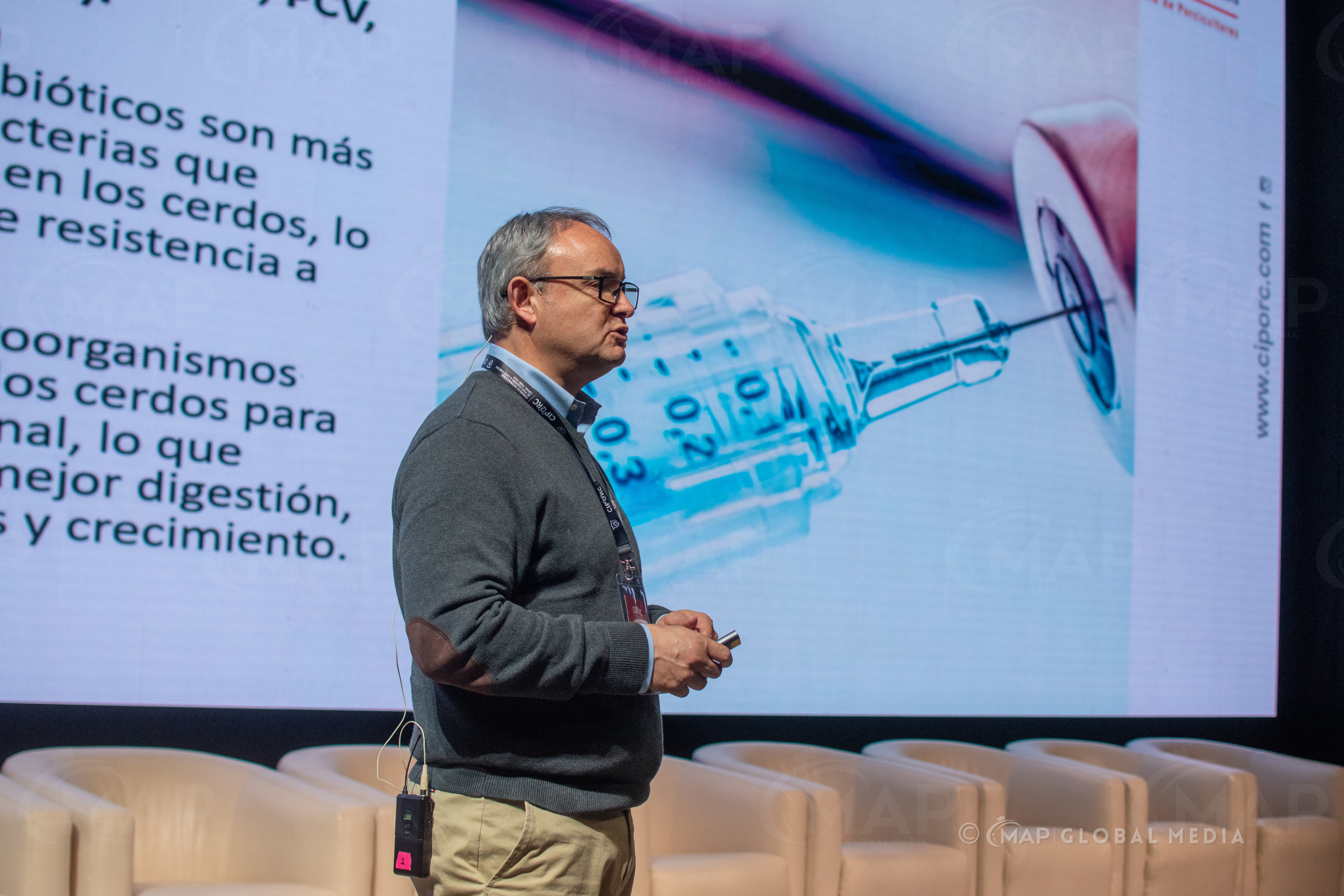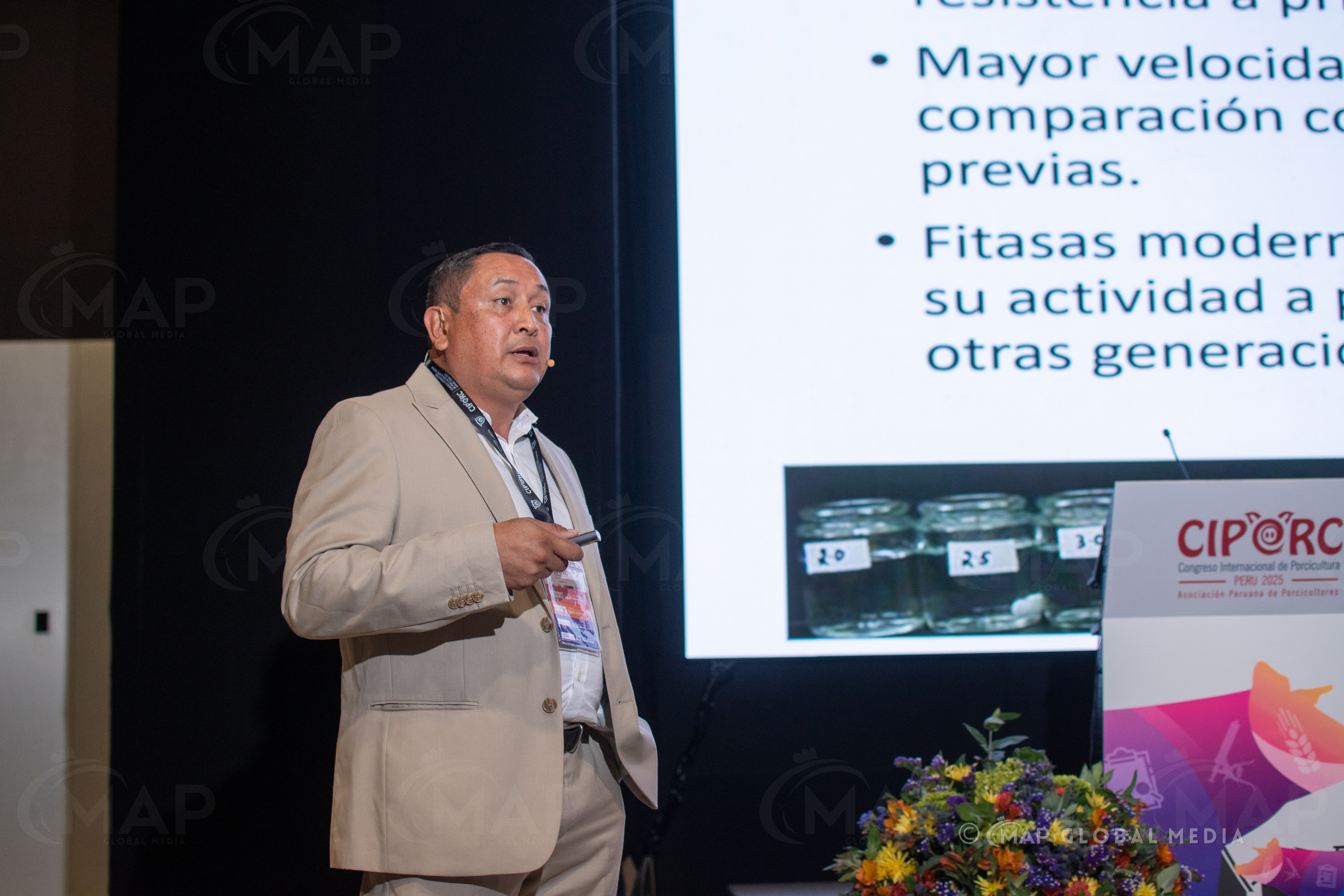 En esta ponencia se abordó el rol de las fitasas de nueva generación en la liberación de nutrientes esenciales y su contribución a una producción más eficiente y sostenible. El Dr. Cuello presentó resultados técnicos recientes sobre la reducción de costos y mejora del bienestar animal. - “Tecnología y gestión en la producción porcina: nuevos enfoques frente a los desafíos globales”
