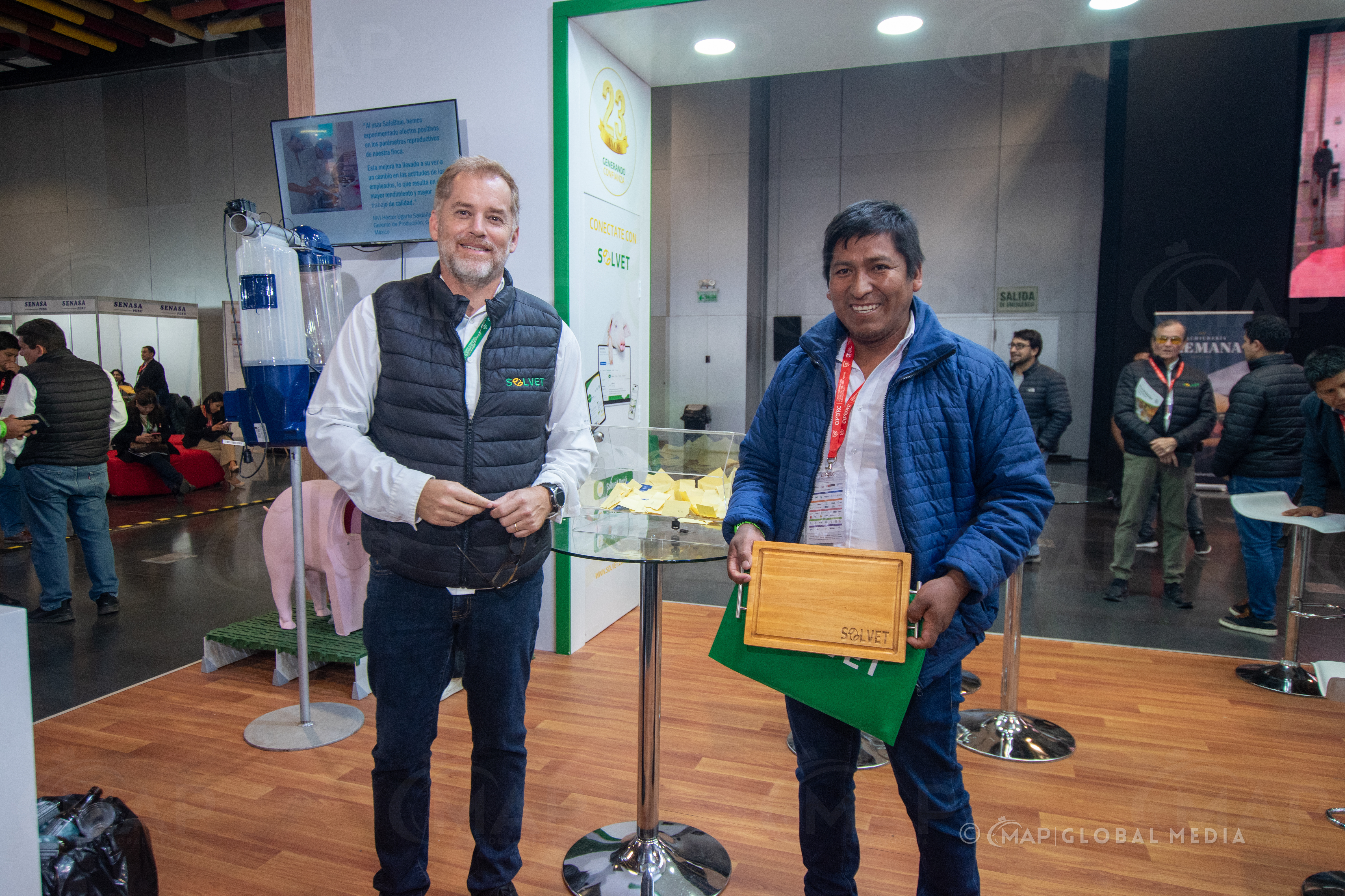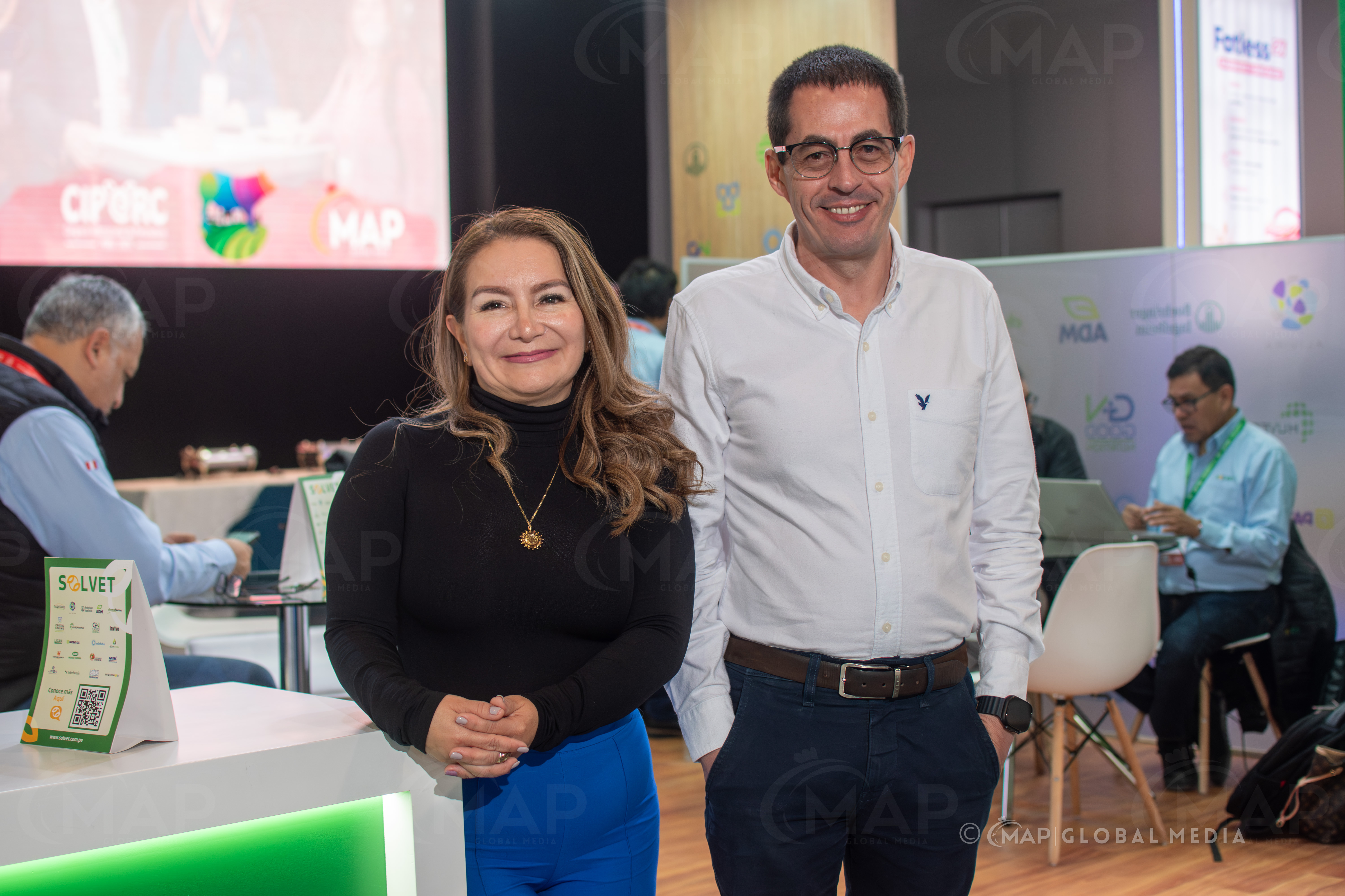 Durante el congreso, el equipo técnico y comercial de Solvet sostuvo reuniones estratégicas con clientes de Perú y otros países de la región, reafirmando alianzas comerciales y presentando sus más recientes soluciones para la sanidad, nutrición y productividad porcina.